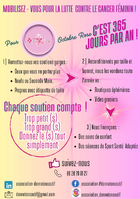 🎀 Dans le cadre d’Octobre Rose, une Soutif’Box est installée à la mairie pour recueillir vos soutiens gorge inutilisés en bon état.