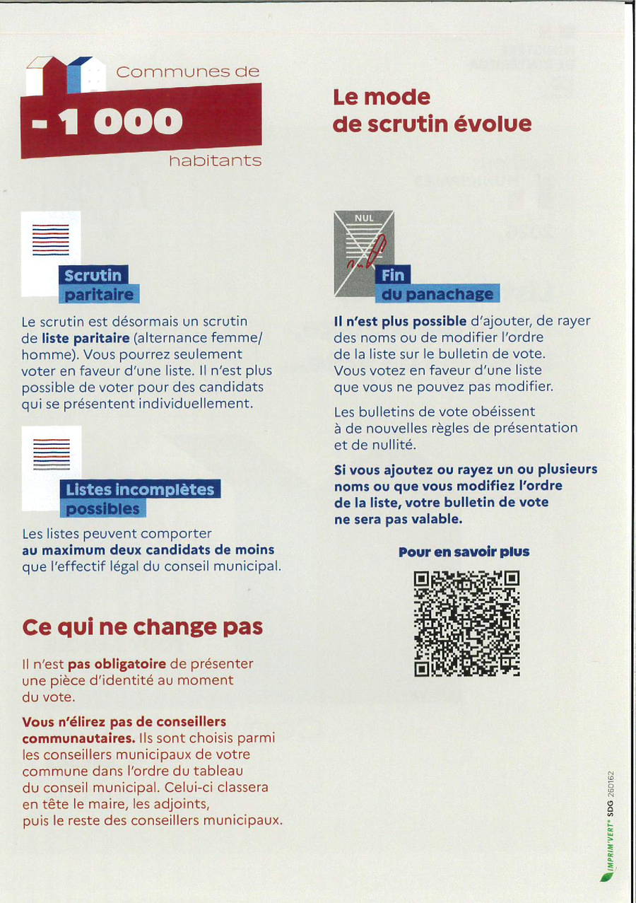 RAPPEL : Le mode de scrutin évolue pour les élections municipales 2026 dans les communes de moins de 1000 habitants.