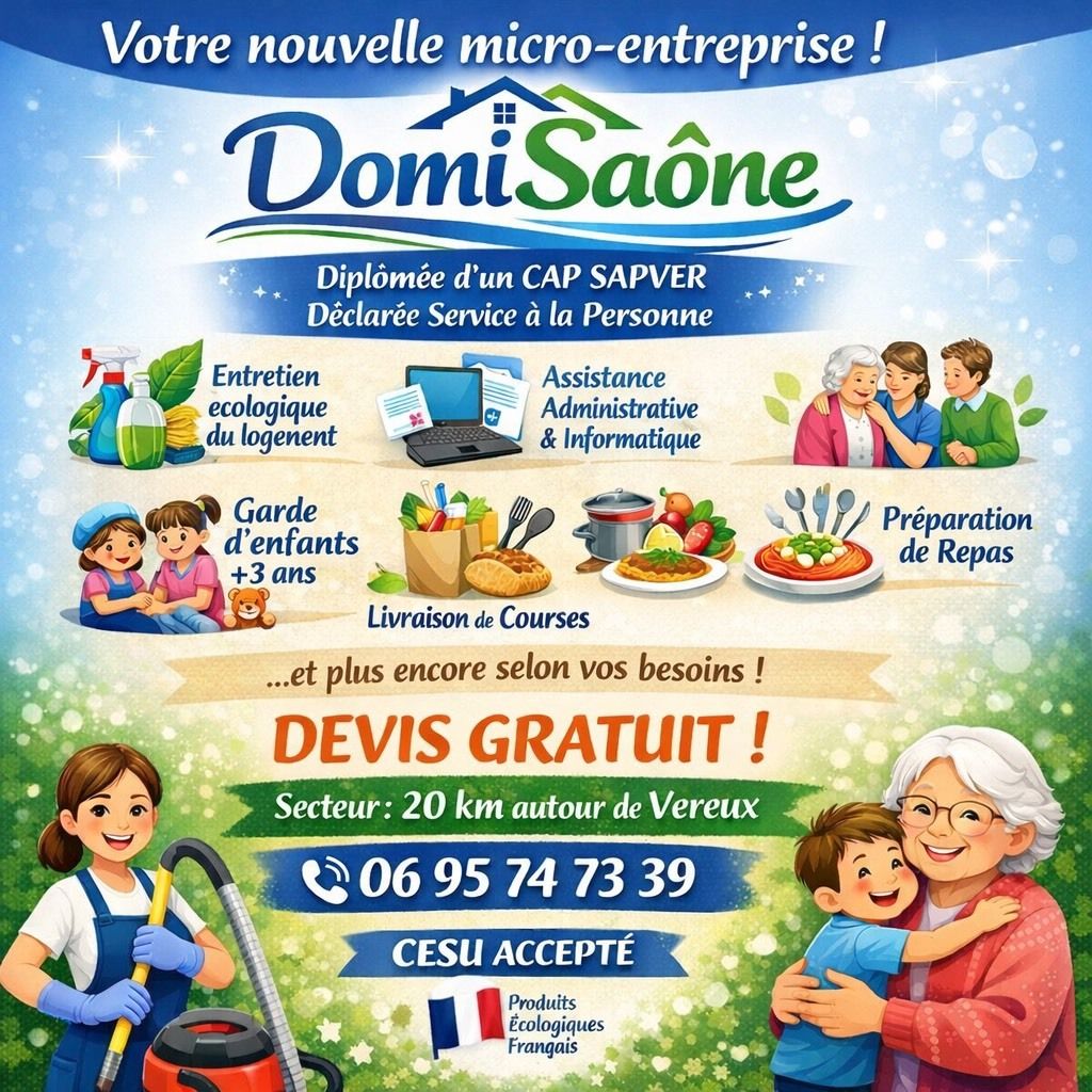 Je viens de créer ma micro-entreprise DomiSaÎne, déclarée service à la personne (diplÎmée CAP SAPVER).