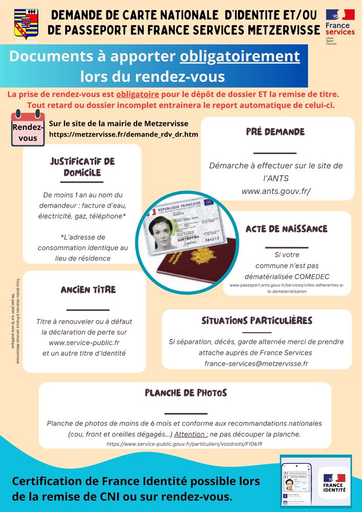 Pour les dépôts de dossier, il est impératif d'apporter les documents suivants :