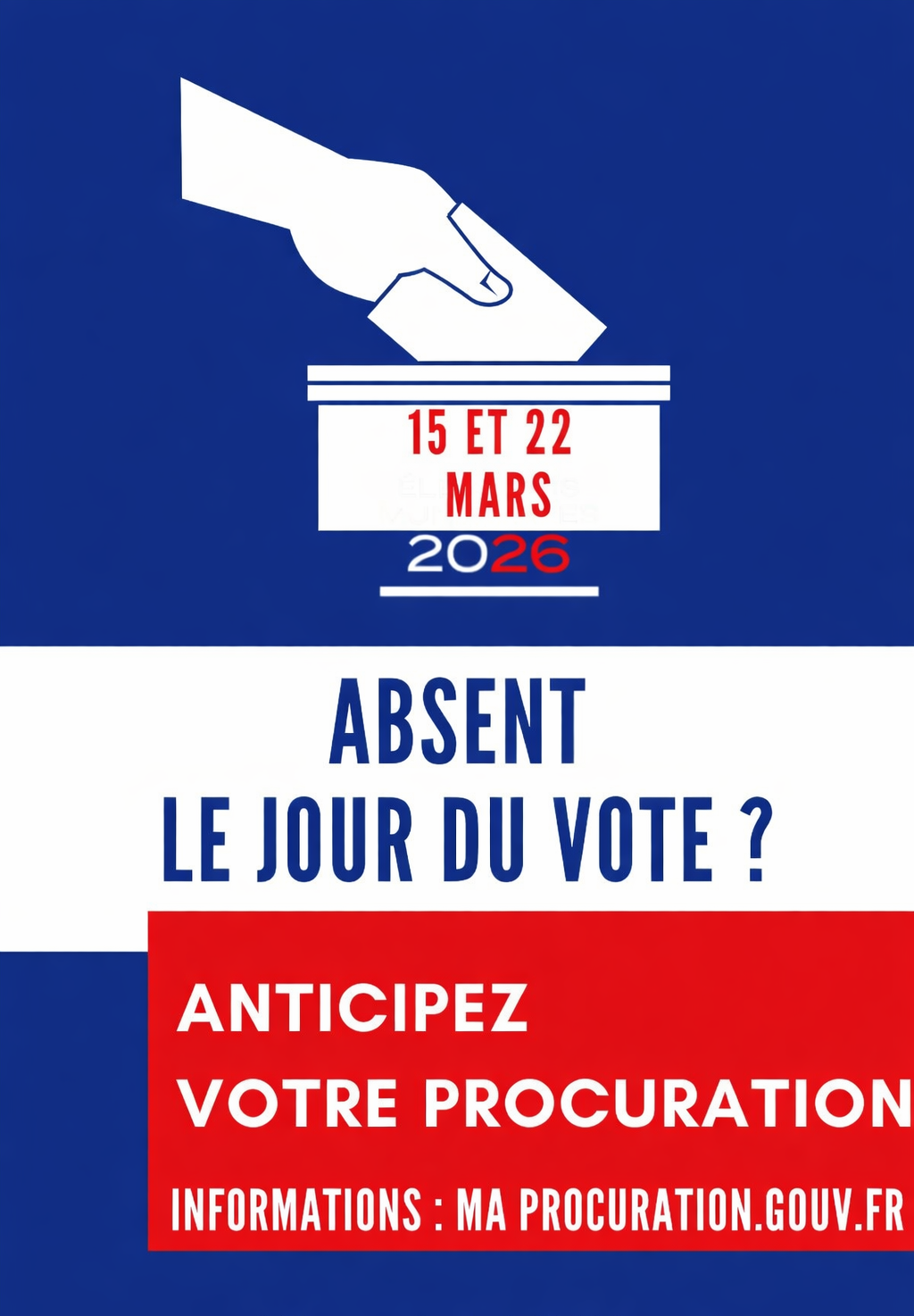 Si vous savez déjà que vous ne pourrez pas être présent le jour du vote, pensez à faire votre procuration dès maintenant.