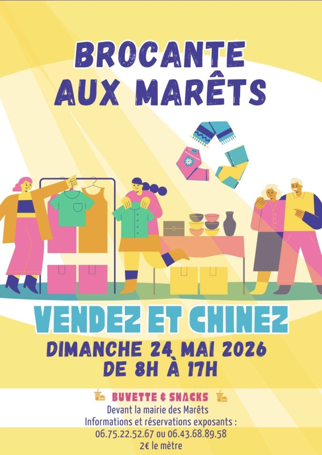 Notez bien la date : dimanche 17 mai 2026 ! Notre brocante s’installe au stade pour une journée pleine de vie, de trouvailles et de bonne humeur 🎉