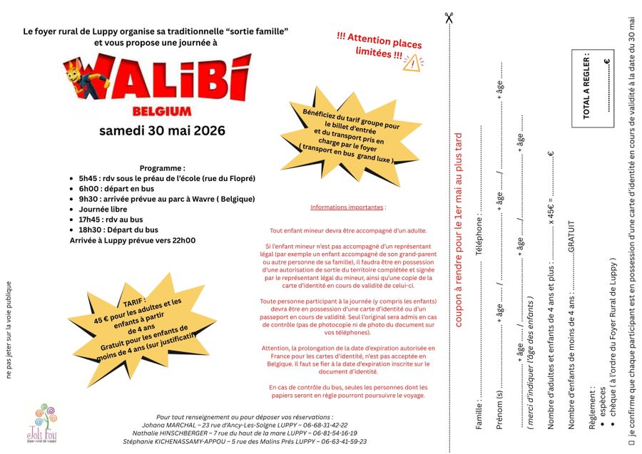 Le foyer rural de LUPPY organise une "sortie famille" le 30 mai prochain.