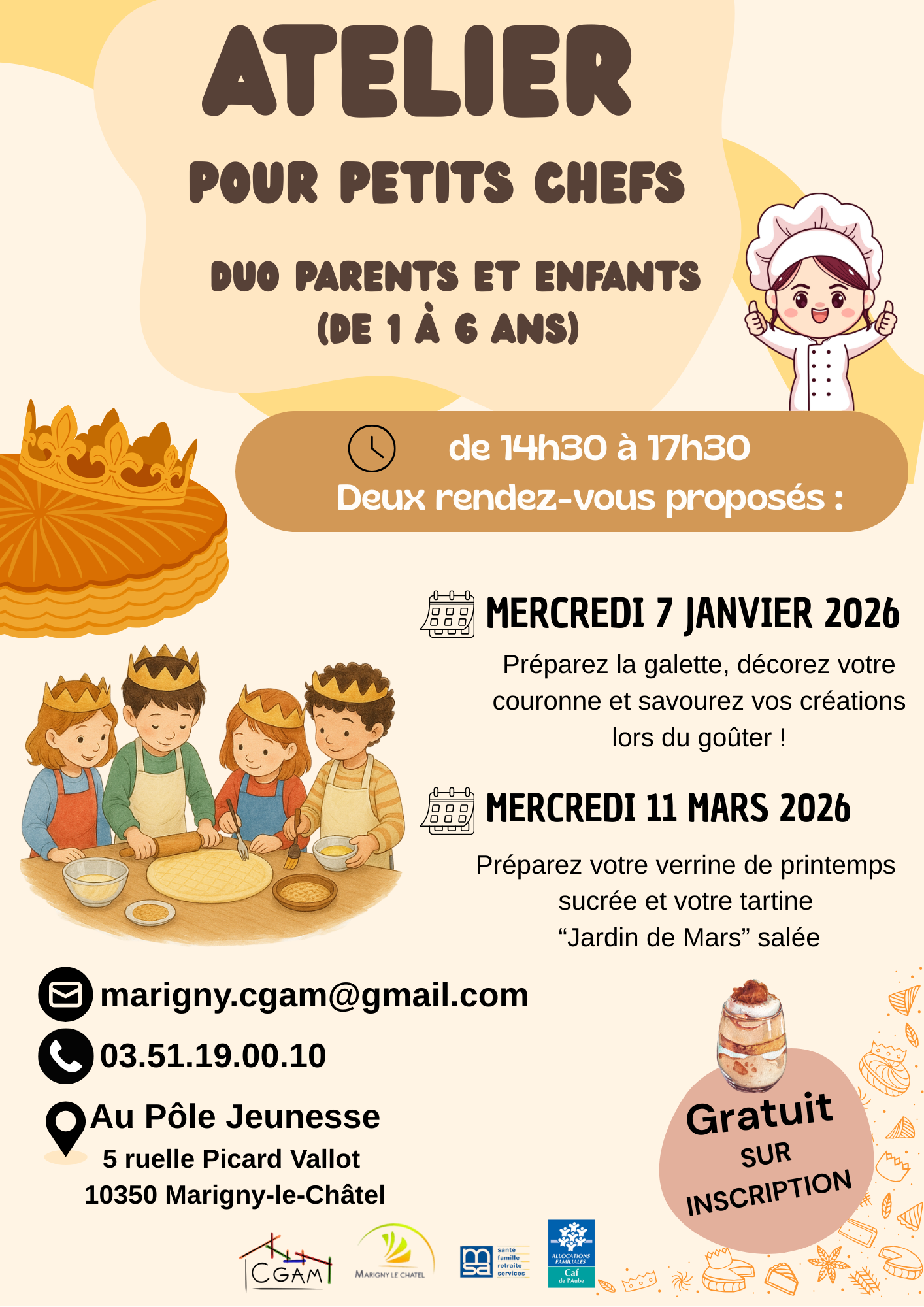Le Comité de Gestion et d’Animation de Marigny-le-Châtel ainsi que les partenaires locaux proposent une programmation des animations enfants (0-6 ans) / parents pour la période de janvier à juin 2026.