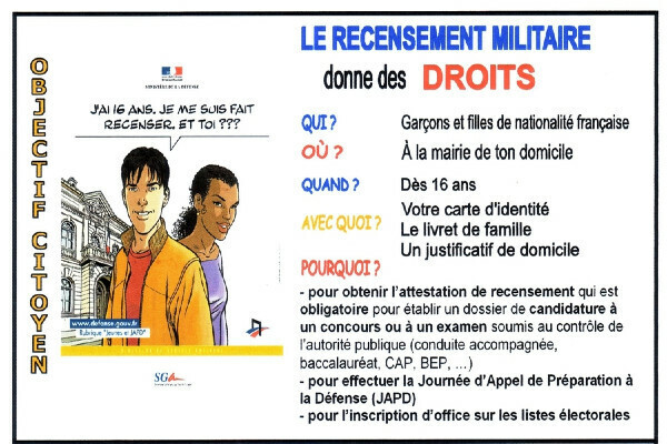 d'être convoqué(e) à la Journée Défense et Citoyenneté (JDC),