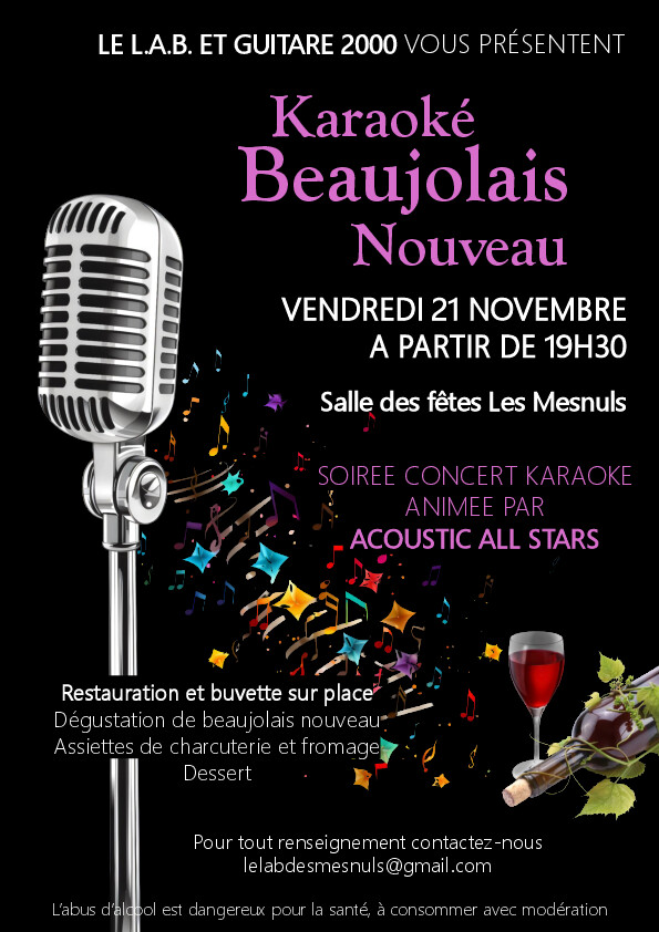 Le L.A.B. et Guitare 2000 vous proposent une soirée en musique pour fêter l'arrivée du Beaujolais nouveau.