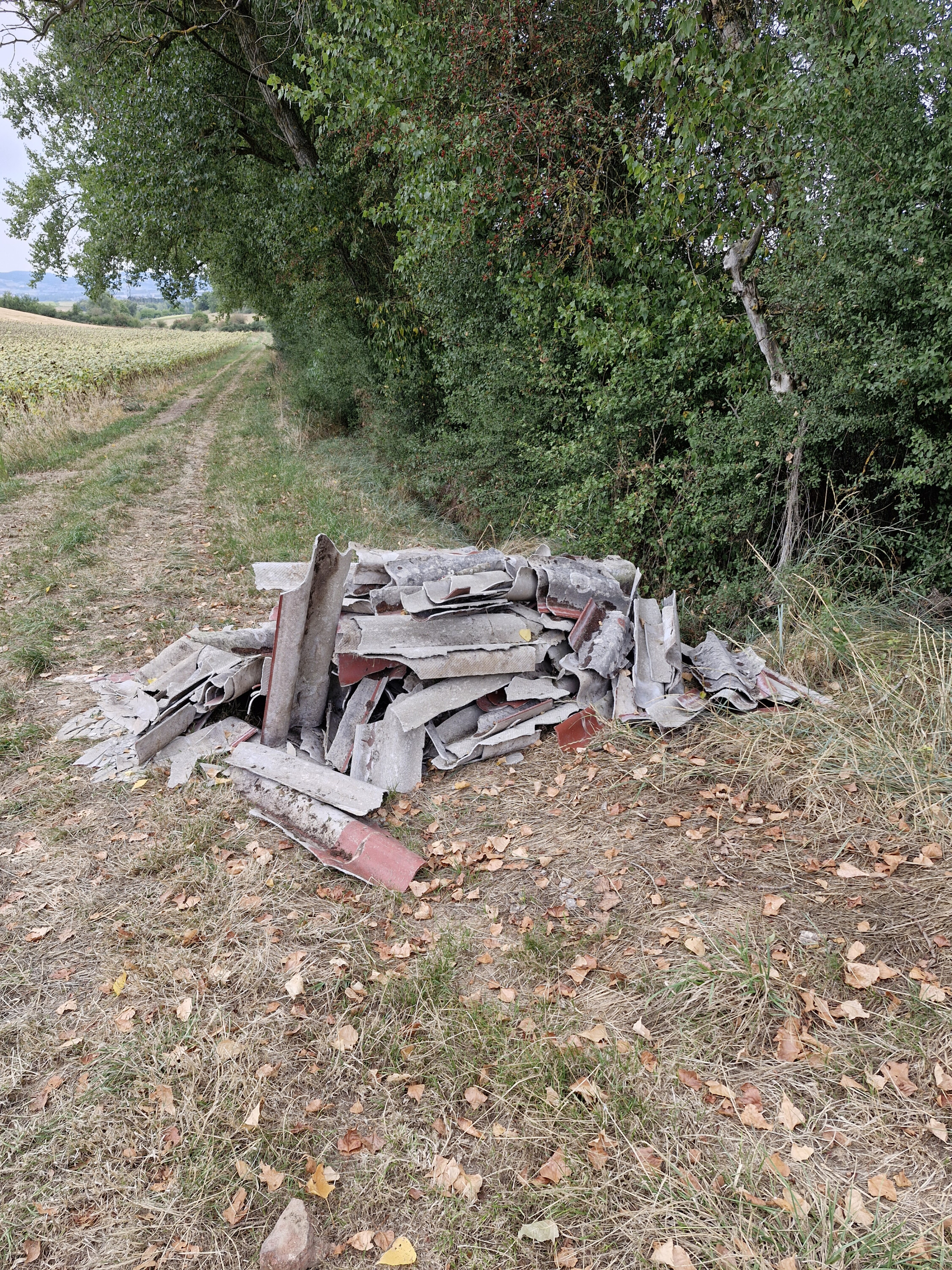 Entre le samedi 23 et le dimanche 24 août, nous avons été encore une fois victime d'un dépôt sauvage de tôles amiantées sur le chemin communal dit du Fond de Rougnat à Nonette.