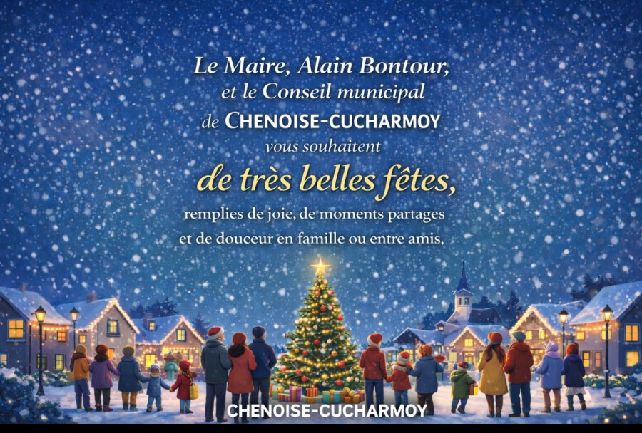 Le Maire, Alain Bontour, et le Conseil municipal de Chenoise-Cucharmoy souhaitent à l’ensemble des habitantes et habitants de très belles fêtes, remplies de joie, de moments partagés et de douceur, en famille ou entre amis.