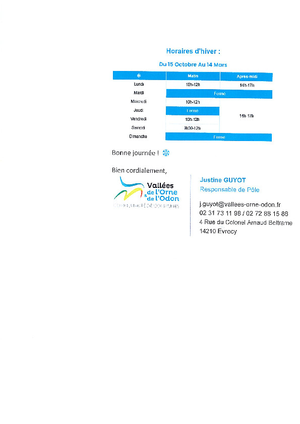 Nous vous rappelons que les déchèteries de Baron-sur-Odon et de Sainte-Honorine-du-Fay passent en horaires d'hiver à partir de mercredi prochain.