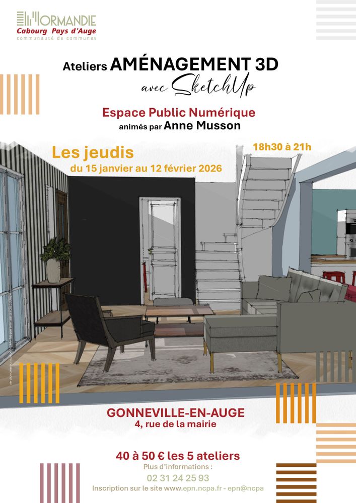 L'Espace Public Numérique vous propose un atelier "Aménagement 3D avec SketchUp" à partir du 15 janvier