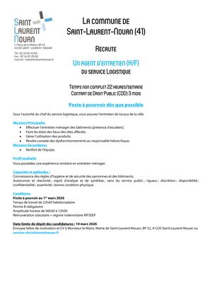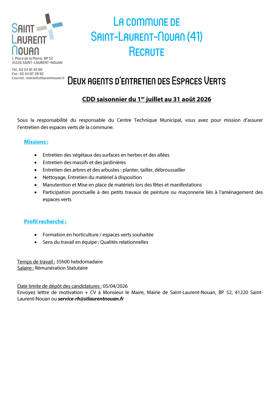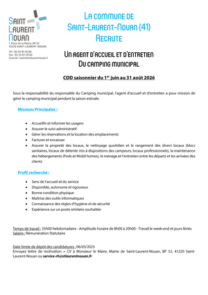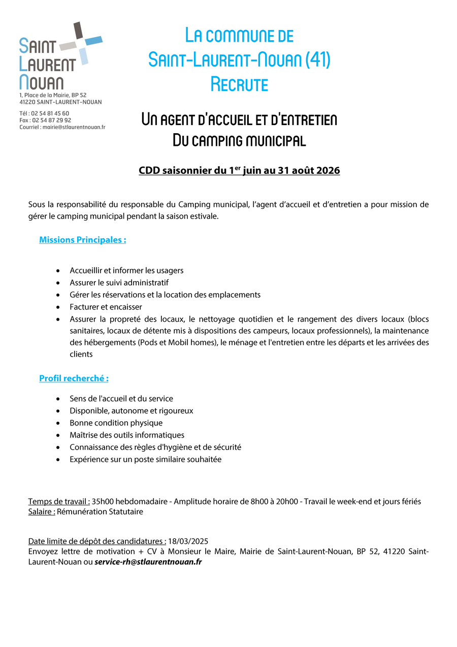 📝Candidature à déposer à l’accueil de la mairie ou par mail à