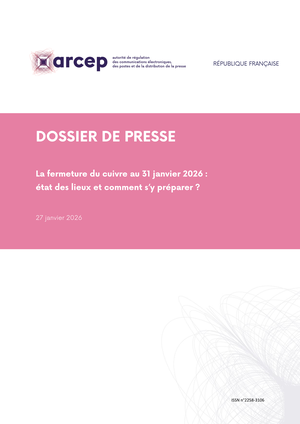 Vous avez probablement déjà entendu parler de la fermeture des lignes cuivre, veuillez donc trouver ci-joint un dossier écrit de l'ARCEP (Autorité de régulation des communications électroniques, des postes et de la distribution de la presse) afin de répondre à la plupart de vos questions, essentiellement sur le réseau fibre.