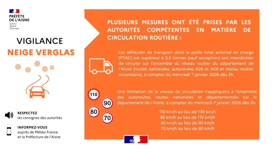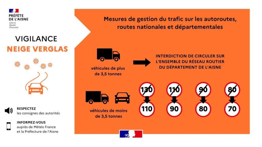 ➡️ La préfète de l’Aisne recommande d’anticiper ou de reporter les déplacements et, lorsque cela est possible, de privilégier le télétravail.