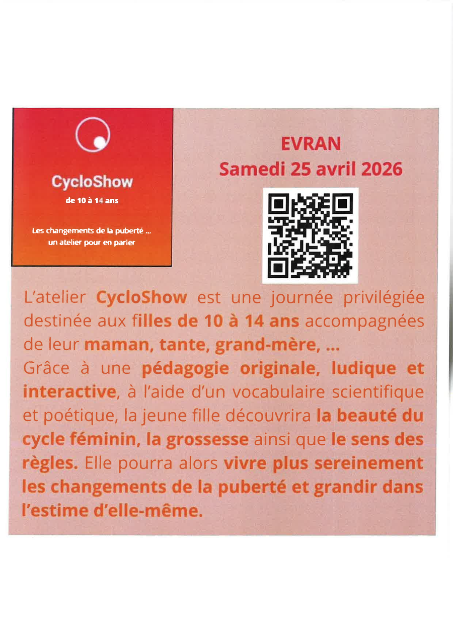 L'atelier Cycloshow est une journée privilégiée destinée aux filles de 10 à 14 ans accompagnées de leur maman, tante, grand-mère.
