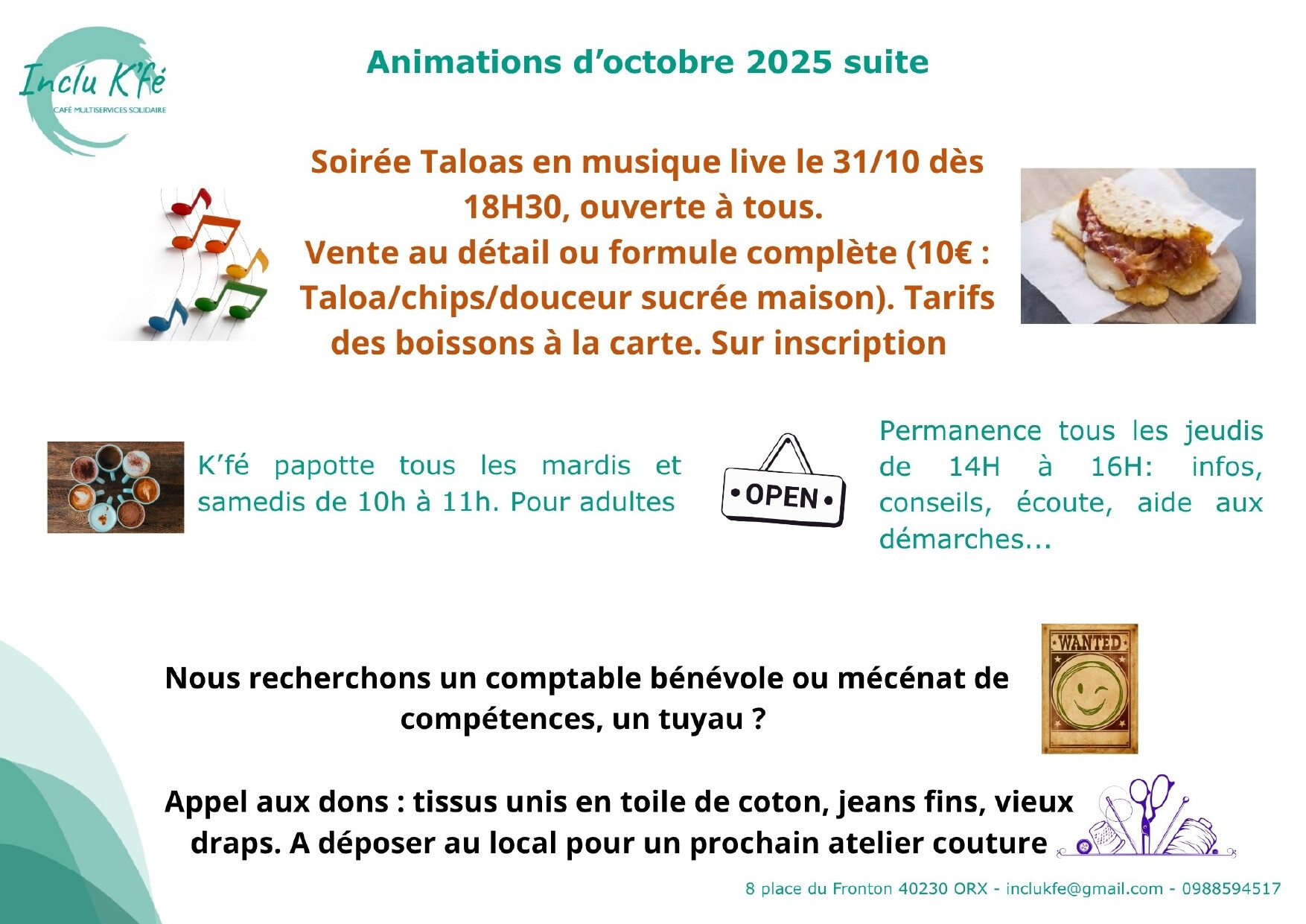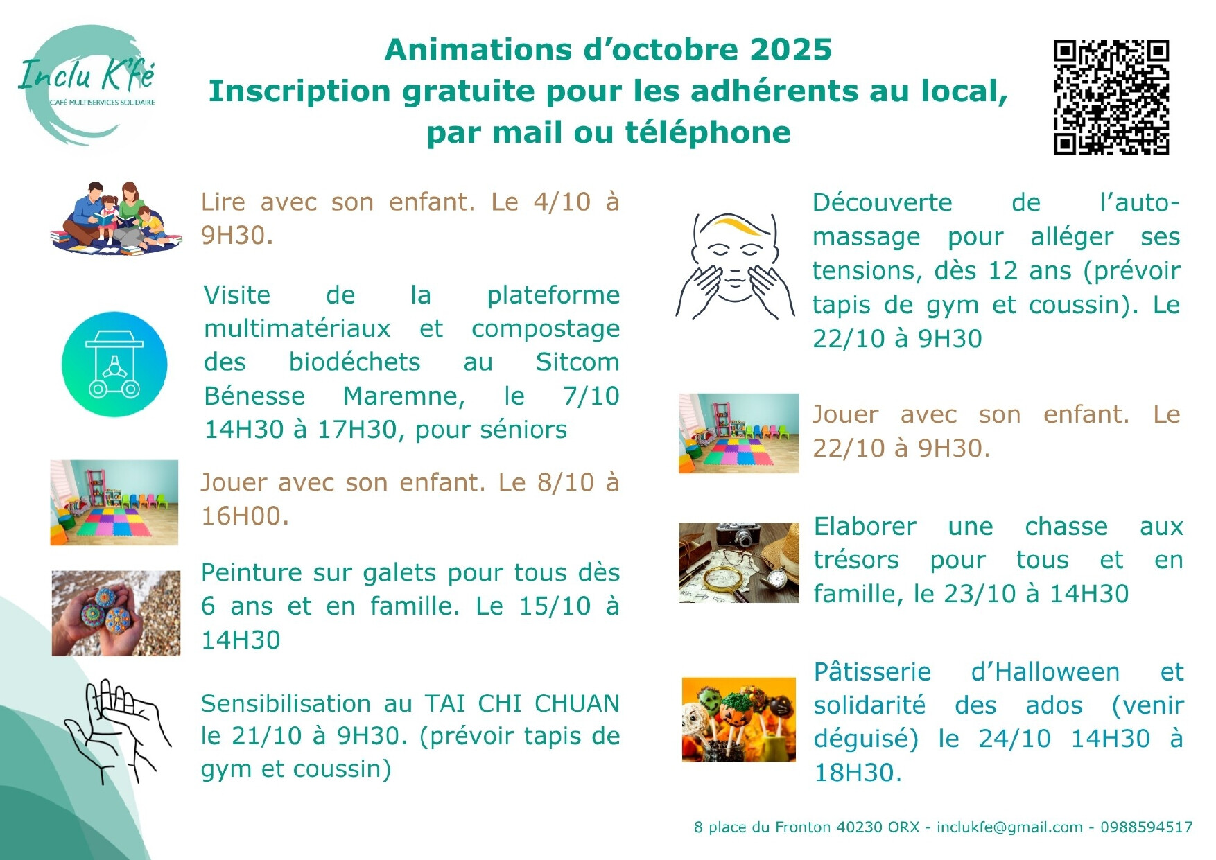 Laissez-vous porter par des histoires captivantes, des personnages hauts en couleur, et des ateliers interactifs qui prolongent la magie : le 12 octobre Ă Saint-Jean-de-Marsacq, le 2 novembre Ă Saint-Geours-de-Maremne et le 30 novembre Ă Vieux-Boucau.