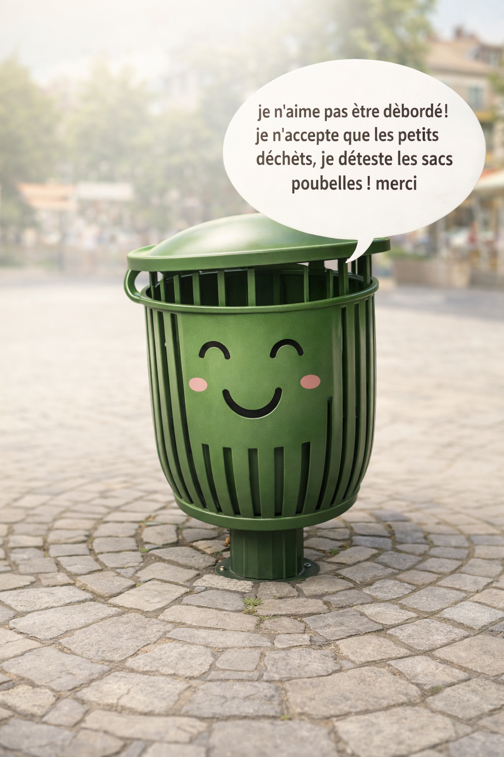 Les petites poubelles de la place sont destinées à vos petits déchets (papiers, mouchoirs, emballages de goûter...).