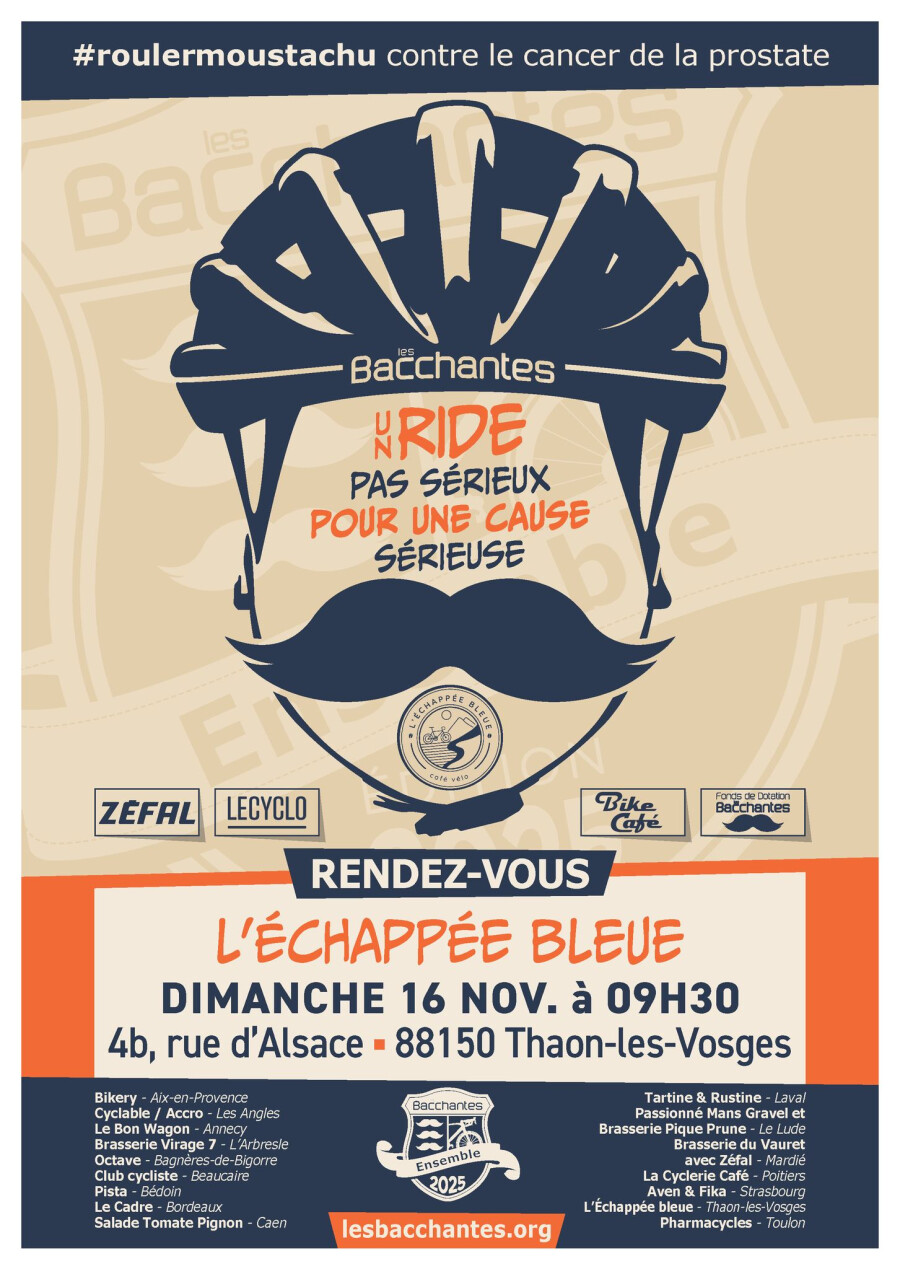 Dimanche 16 novembre à 9h, le Café Vélo L’Échappée Bleue de Thaon-les-Vosges accueille Les Bacchantes à vélo pour une édition inédite, joyeuse… et surtout solidaire 💙