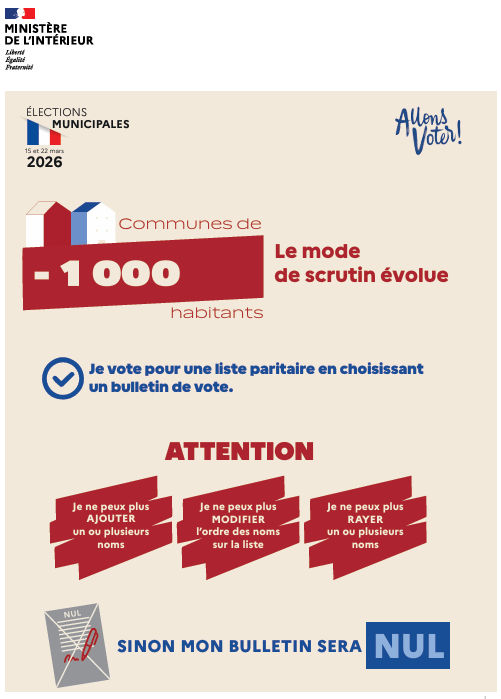 Le premier tour des élections municipales aura lieu le dimanche 15 mars 2026.