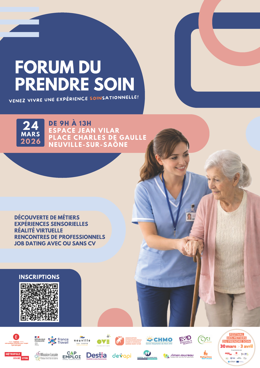 L’agence France Travail de Neuville, la Mission Locale Plateau Nord Val de Saône, la MMIE, en collaboration avec la Ville de Neuville-sur-Saône et la Métropole de Lyon, vous invitent à venir découvrir les métiers du prendre soin.