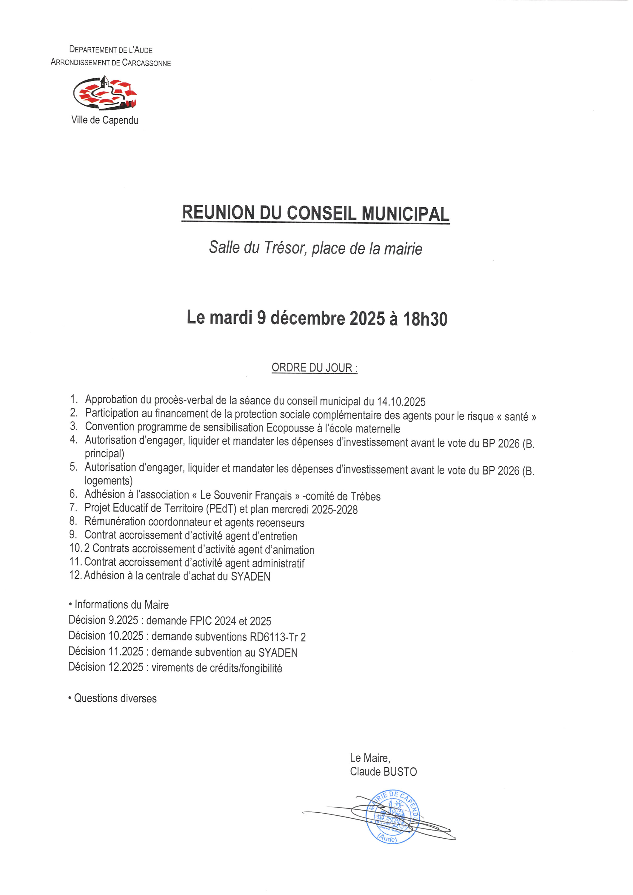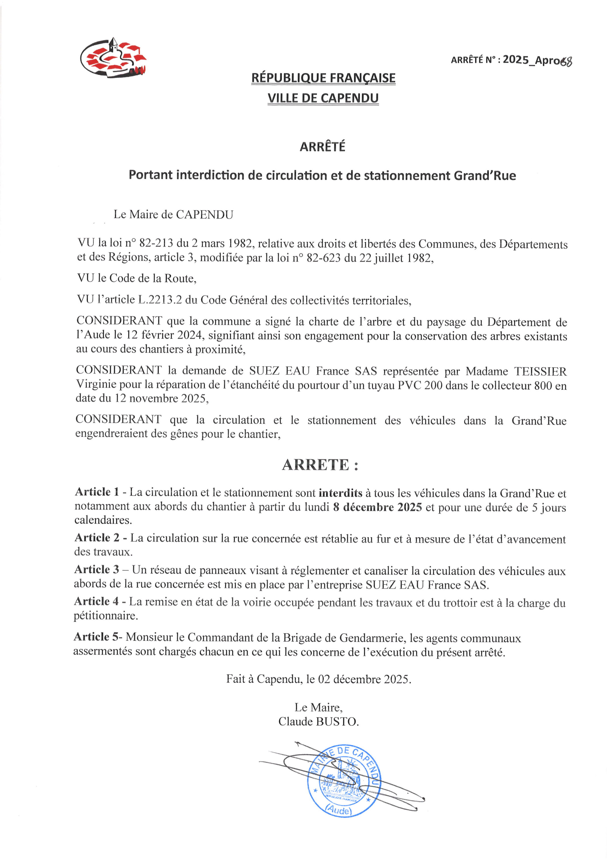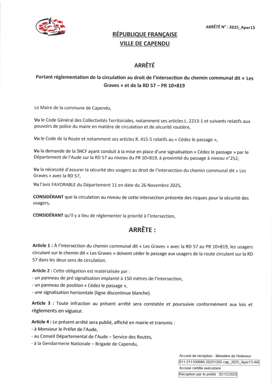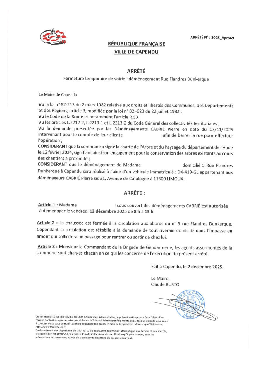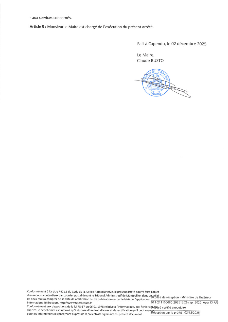 Par arrêté municipal n°2025_Apro_64 du 28 octobre 2025, le maire de Capendu a ordonné l’ouverture d’une enquête publique relative à la modification de droit commun n°1 du PLU.