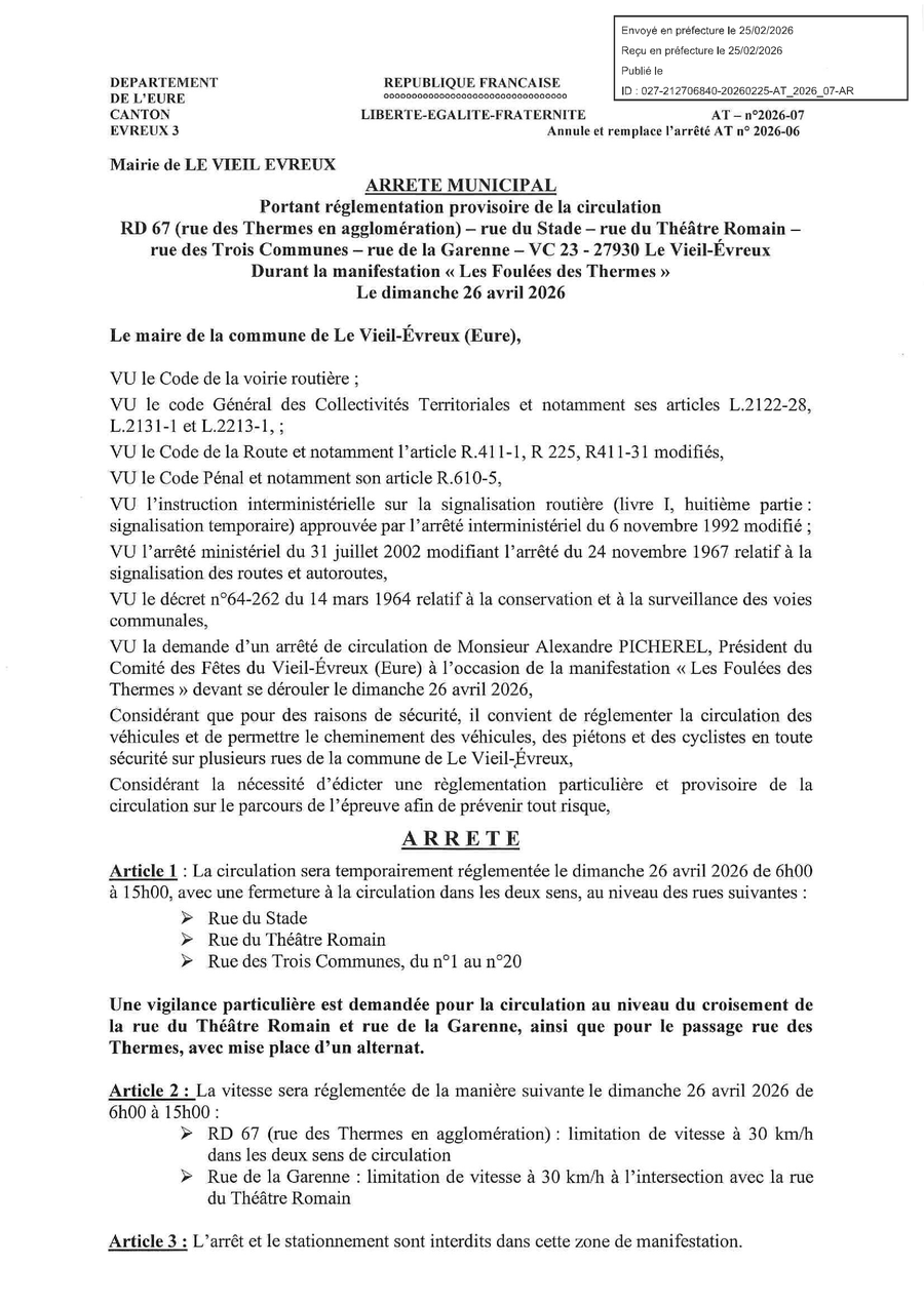 Dans le cadre de la 4ème édition des Foulées des Thermes, le dimanche 26 avril 2026, des restrictions de circulation sont programmées pour la sécurité des participants et des bénévoles (zone en orange sur le plan) :
