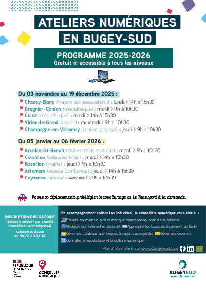 Pour plus d’informations, rendez-vous sur www.ccbugeysud.com ou contactez-nous au 04 79 81 41 05.