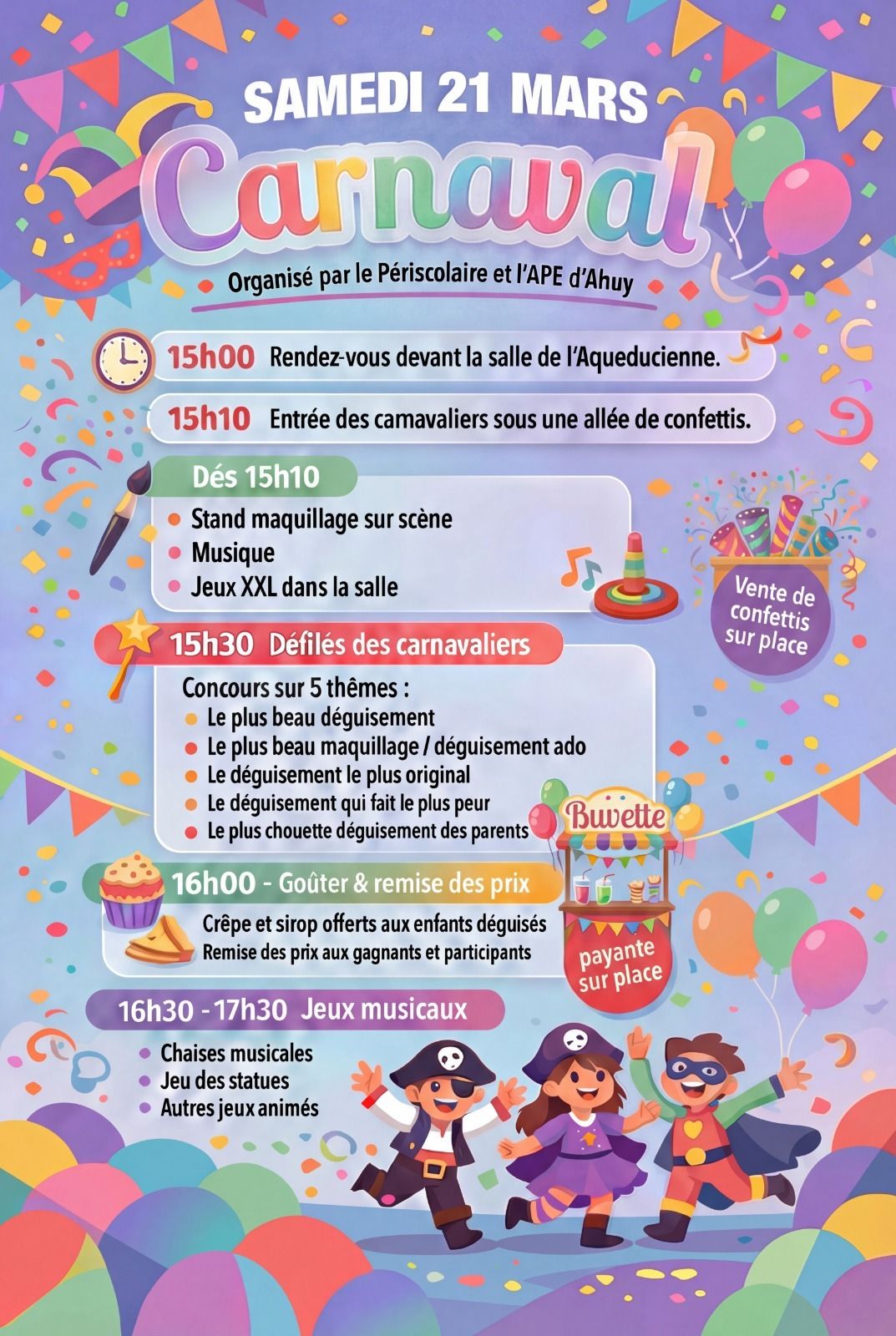 L’association des parents d'élèves et l'accueil de loisirs Ahuy's titi proposent un Carnaval