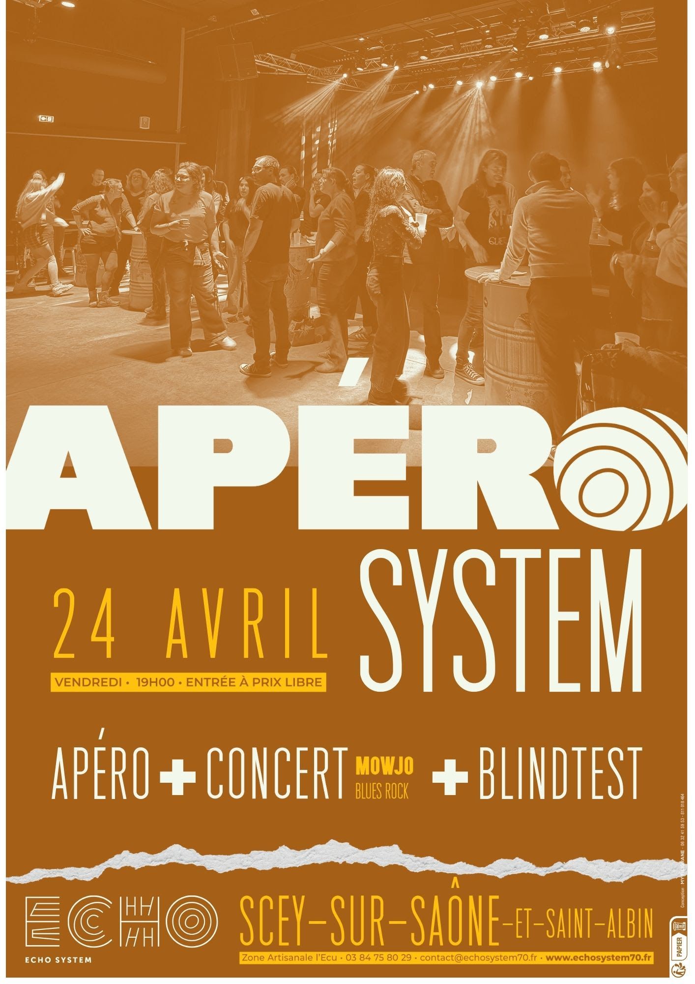 L’Apéro System revient à Echo System avec une soirée entre concert live et jeu musical. MowJo, one man band entre blues rock, rhythm’n blues et stoner, ouvre la soirée en solo avec un set direct et sans artifices.
