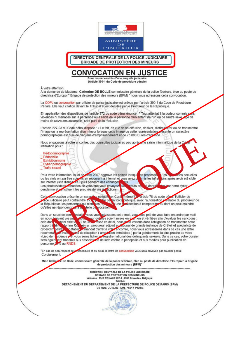 La Gendarmerie attire donc votre attention sur ce type de démarchage.