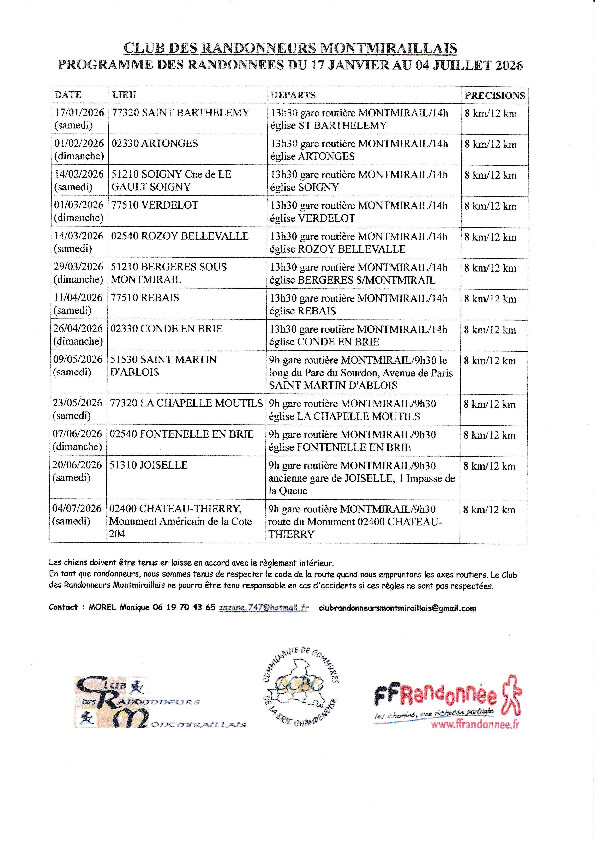Programmes des randonnées