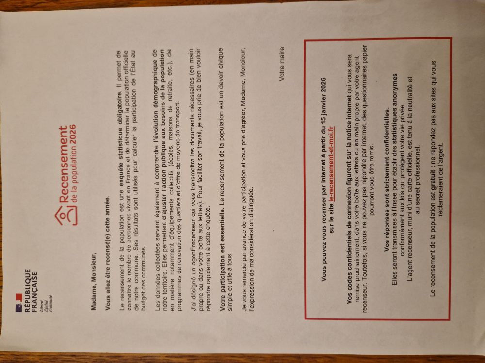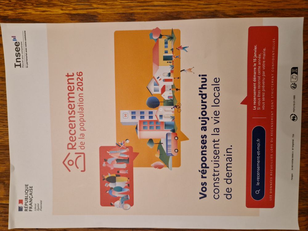 Vous recevrez sous peu dans votre boîte aux lettres le document officiel de recensement puis les documents nécessaires au recensement.