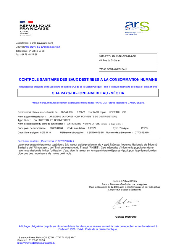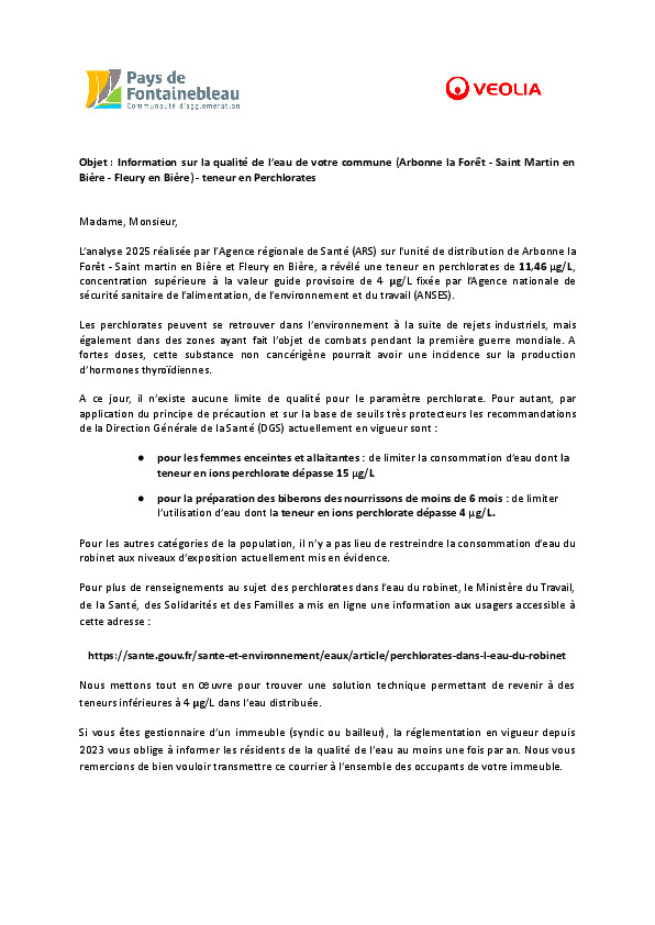 Une information sur la qualité de l’eau. Ainsi que le courrier dont tous les abonnés vont être destinataire.