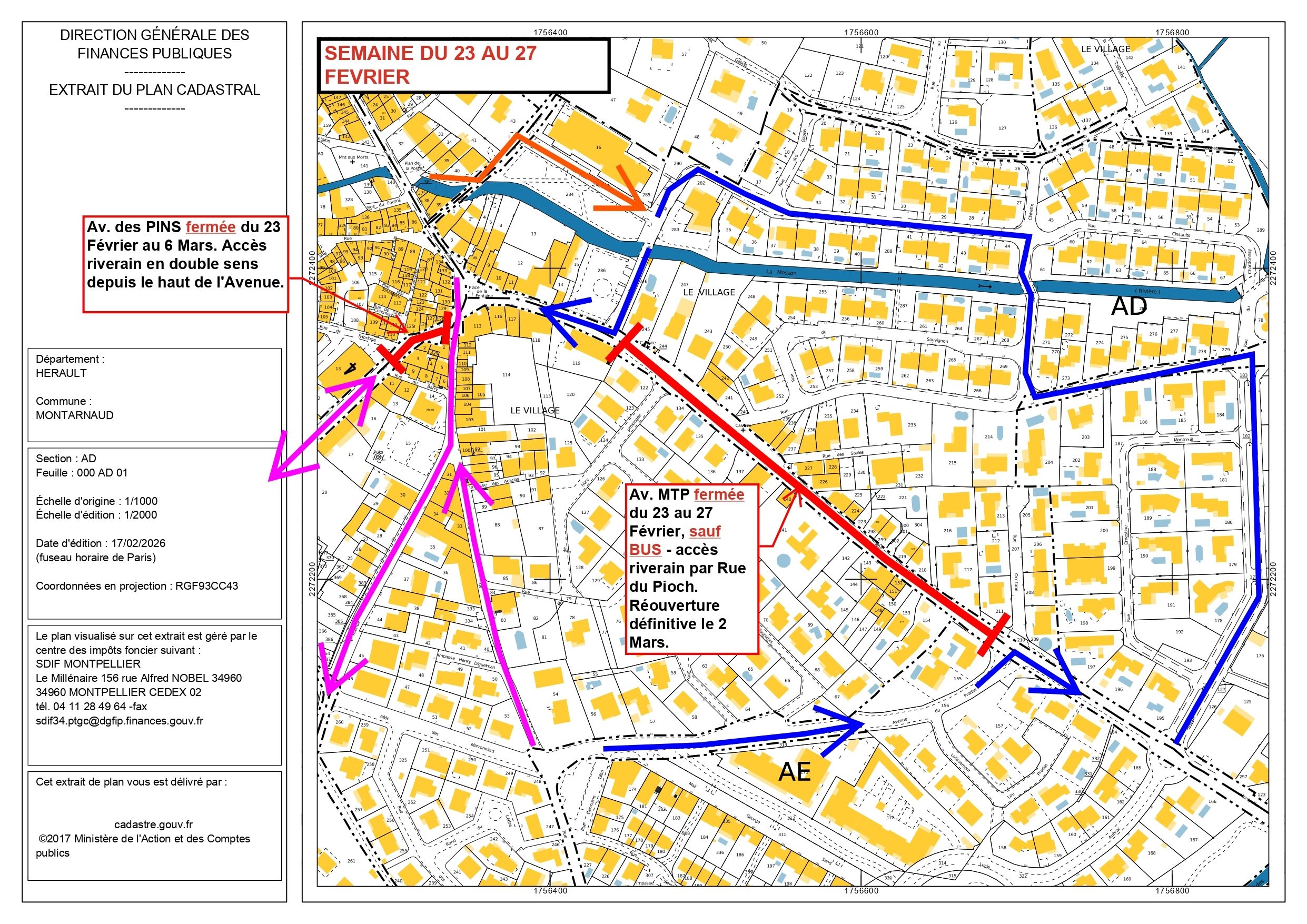 👉Ouverture dès le lundi 16 février avec un sens de circulation revenu à l’identique tant sur la route de Montpellier que sur les rues de la Mosson et Jean-Moulin, afin de permettre une meilleure desserte des commerces. La rue Fabien Vigne restera à double sens.