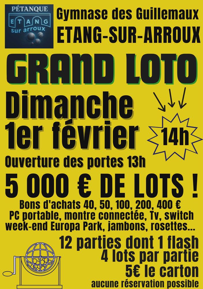 Pour rappel, le club de Pétanque d'Etang-sur-Arroux organise son traditionnel loto ce dimanche 1er février au gymnase des Guillemaux.