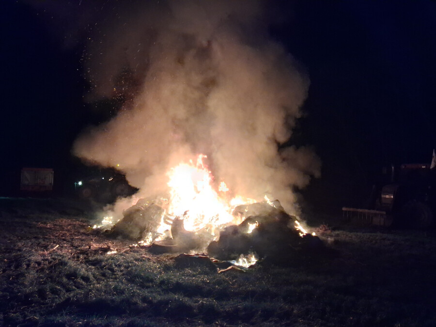Une manifestation d'agriculteurs opposés au Mercosur est en cours sur une parcelle communale à l'entrée de la commune. Un grand feu a été allumé pour la soirée.
