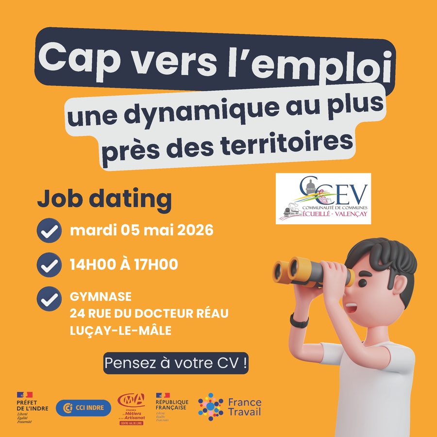 Lettre de motivation et CV à transmettre à : Madame la Présidente de la Communauté de Communes Ecueillé - Valençay
