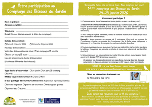 Envoyez vos observations sur le site www.oiseauxdesjardins.fr ou https://cher.biolovision.net/, ou en nous envoyant la fiche de comptage remplie, par mail à antoine.colin@nature18.org, ou par lettre à l’adresse de l’association : Nature 18, 16 rue Henri-Moissan, 18000 Bourges.