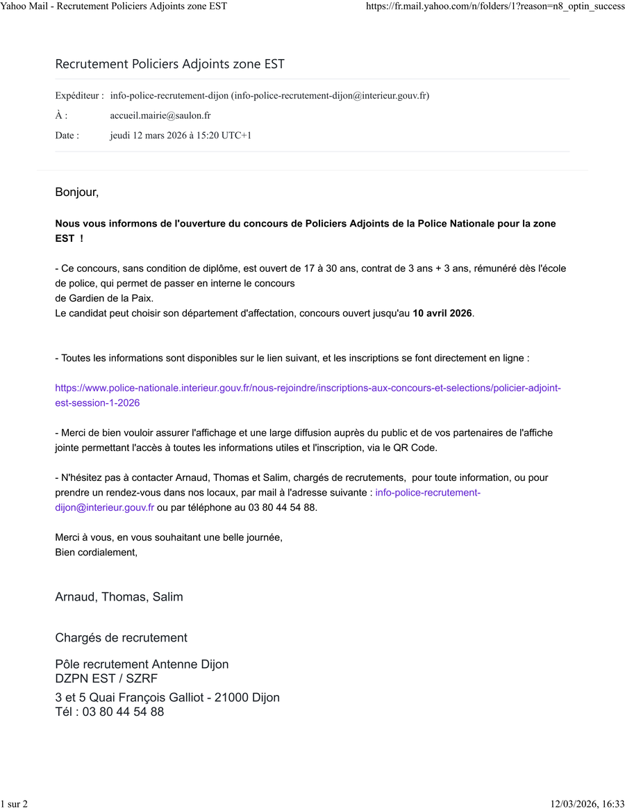 Alerte du 26/03/2026 à 08:41