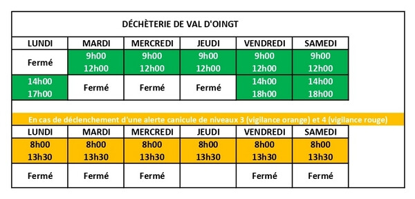 Horaires d'ouverture :