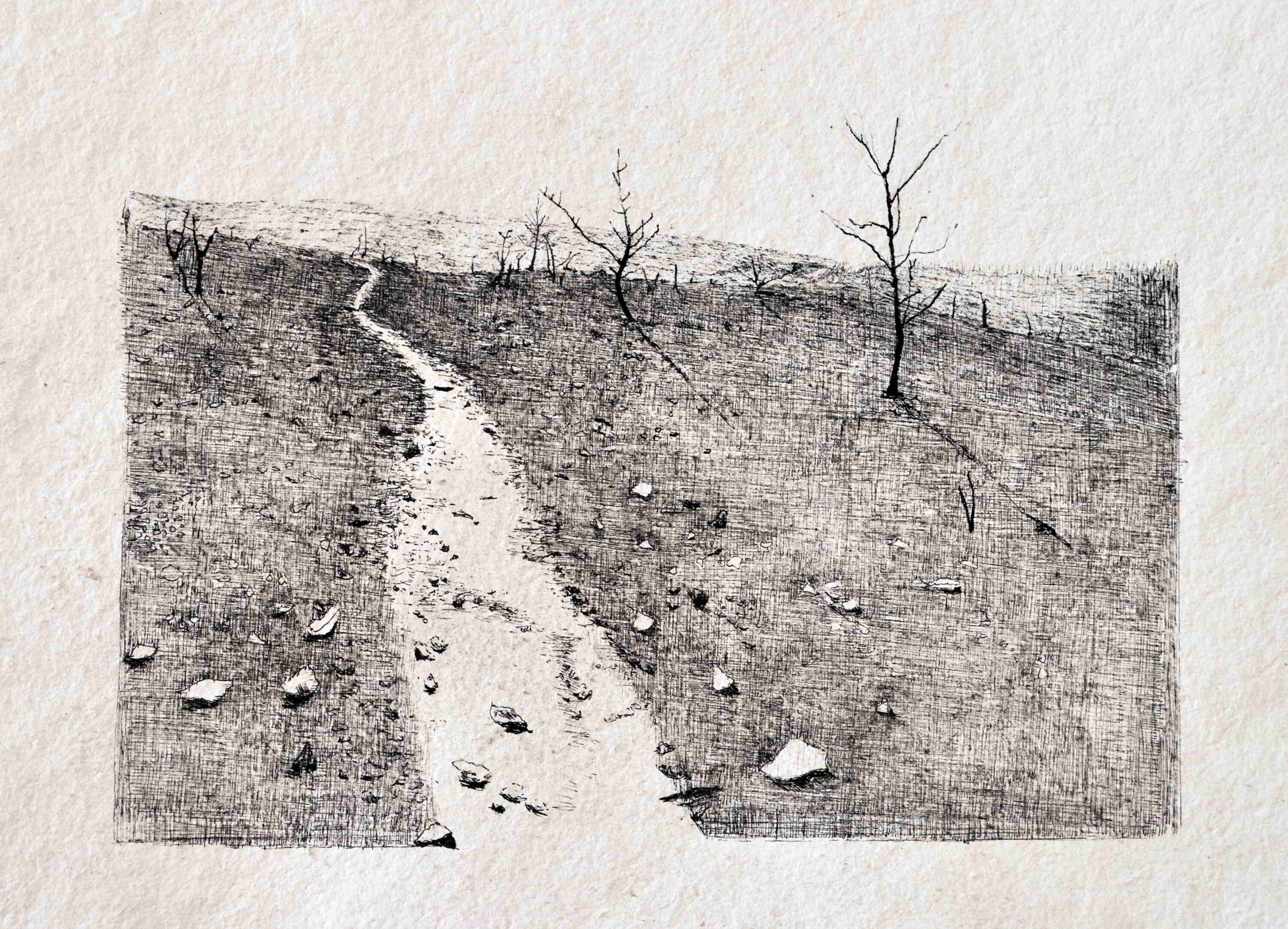 Bientôt à la Galerie de la Cabrerisse pour les Ateliers Ouverts des Artistes d'Occitanie, Anna Camille va exposer la suite des dessins à l'encre et au fusain de la série ‘Après l’incendie’ le week-end du 11/12 octobre.