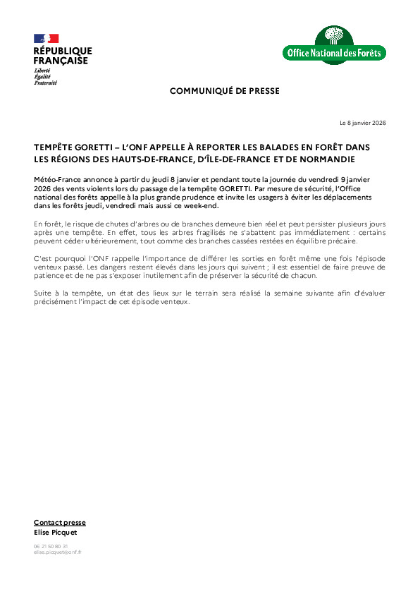 • prenez garde aux chutes d’arbres (les sols étant très humides) et d’objets, ne vous promenez pas en forêt ;