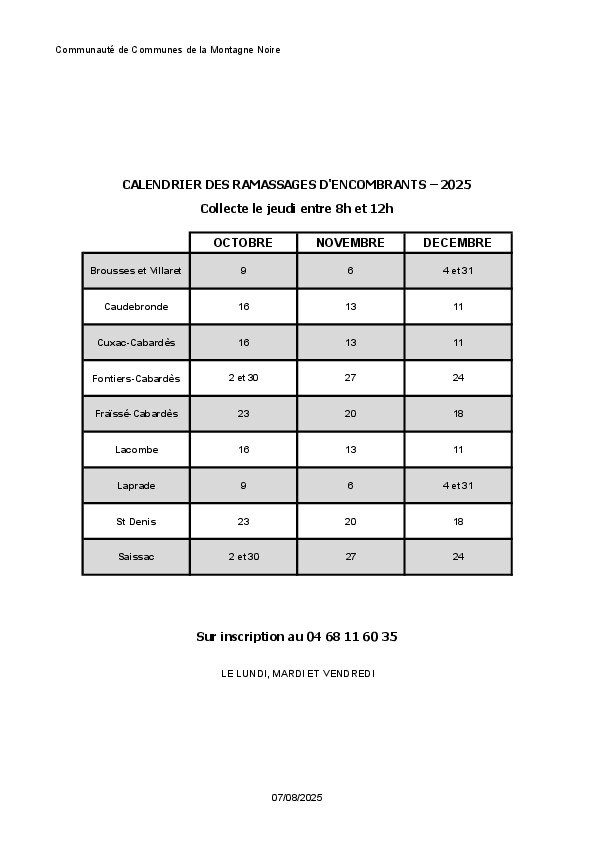 ⚠️ Les déchetteries restent accessibles uniquement aux habitants du territoire de la Communauté de Communes de la Montagne Noire.