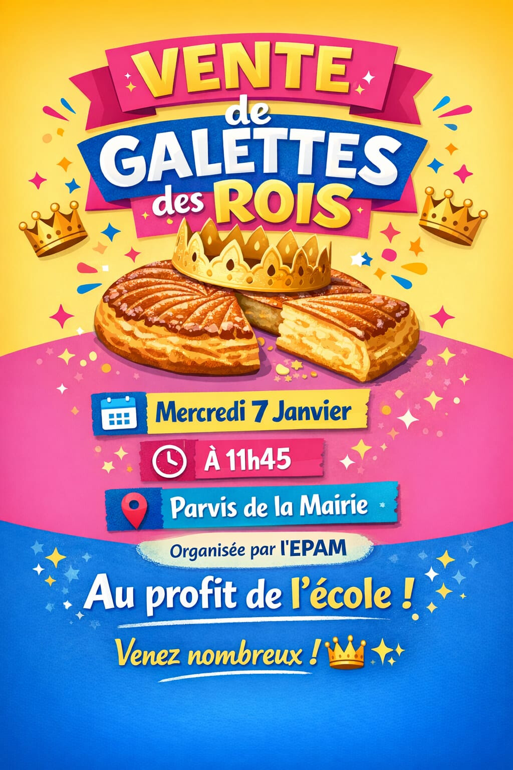 l'EPAM (Association des parents d'élèves de Montgaillard-Lauragais) organise sa traditionnelle vente de galettes des rois sur le parvis de la mairie.
