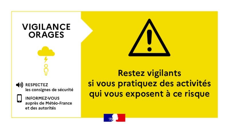 ⚠️ [Météo] Vigilance jaune ORAGES – VENT – PLUIE-INONDATION