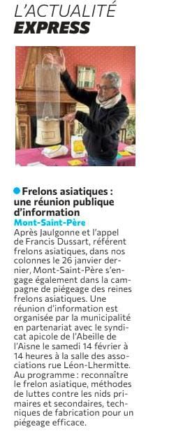 Sur proposition du syndicat apicole « l’abeille de l’Aisne », la commune s’est procurée 50 grilles sélectives pour fabriquer des pièges à frelons asiatiques qu’elle met à disposition des habitants de Mont-Saint-Père sur simple demande.