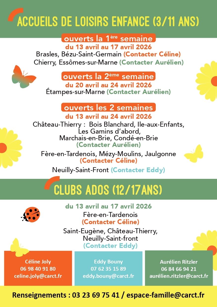 Les accueils de loisirs et les clubs ados de l’Agglo ouvriront leurs portes du 13 au 24 avril 2026.