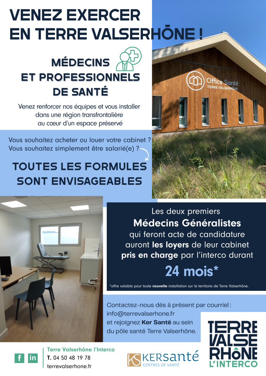 Afin de renforcer l’offre de soins, Terre Valserhône l’Interco met en place une mesure forte pour attirer de nouveaux professionnels de santé :
