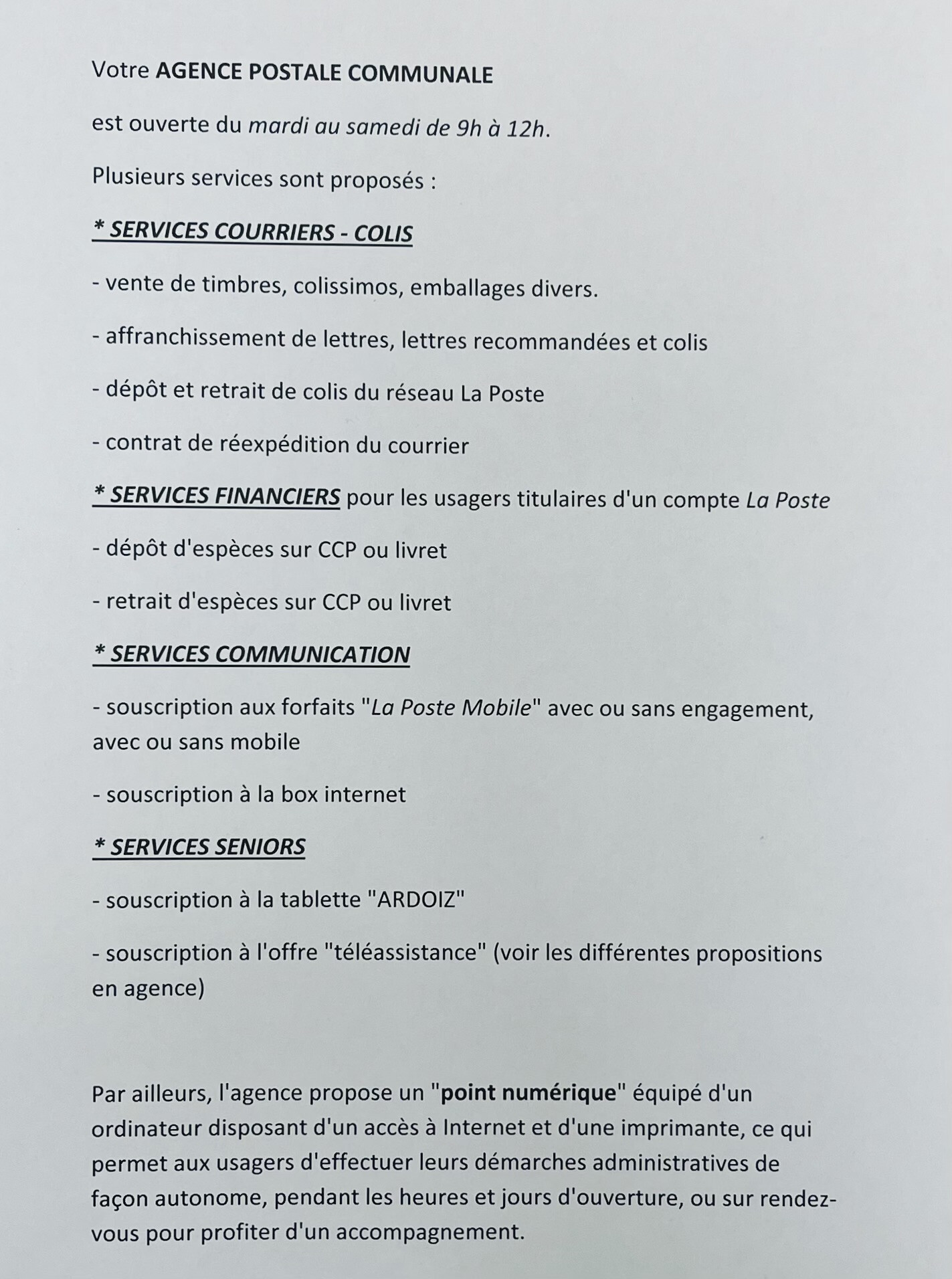 à l’agence postale .