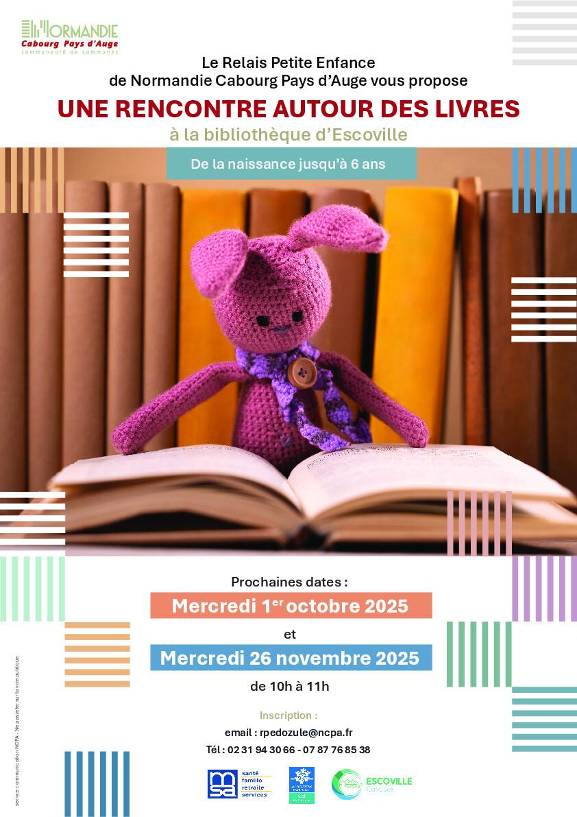 Dozulé : 26/09 – 17/10 – 21/11 – 19/12 de 10h à 11h à la bibliothèque de Dozulé (inscription : rpedozule@ncpa.fr)