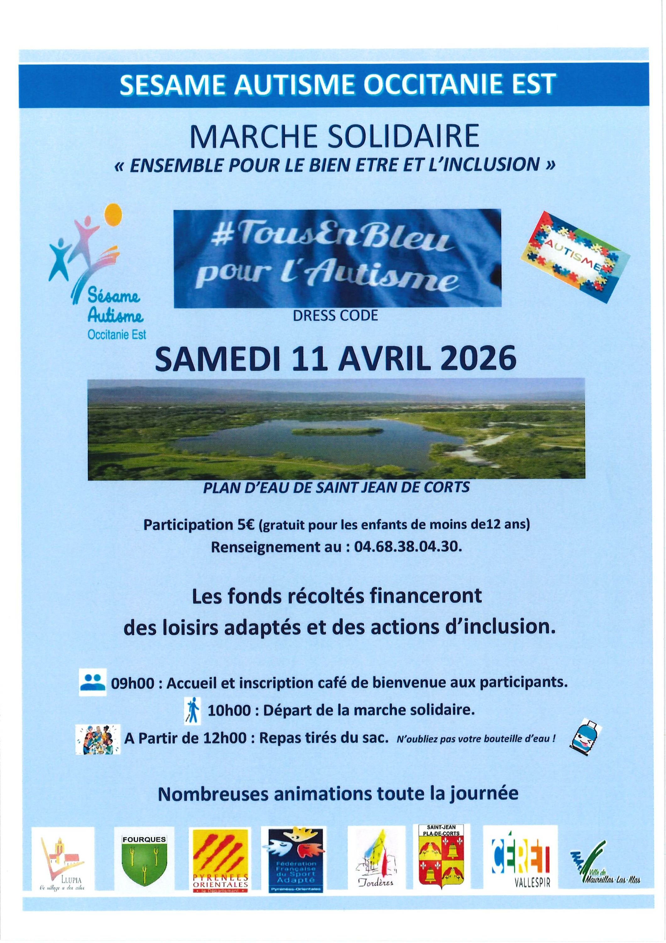 Le 11 avril, Sésame Autisme Occitanie Est vous attend nombreux pour une marche solidaire sur le plan d’eau de Saint Jean de Corts.